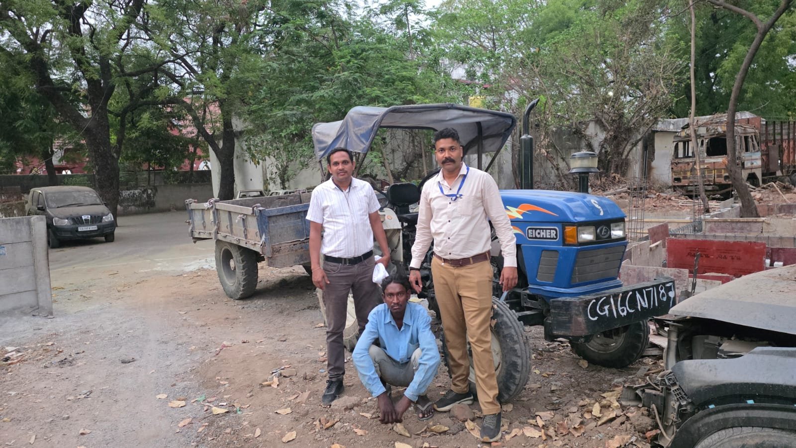 अगले दिन 14 मार्च की सुबह लगभग 8 बजे उन्हें सूचना मिली कि दुकान के सामने खड़ा उनका आईचर ट्रैक्टर और ट्रॉली क्रमांक CG 16 CN 7187 गायब है।