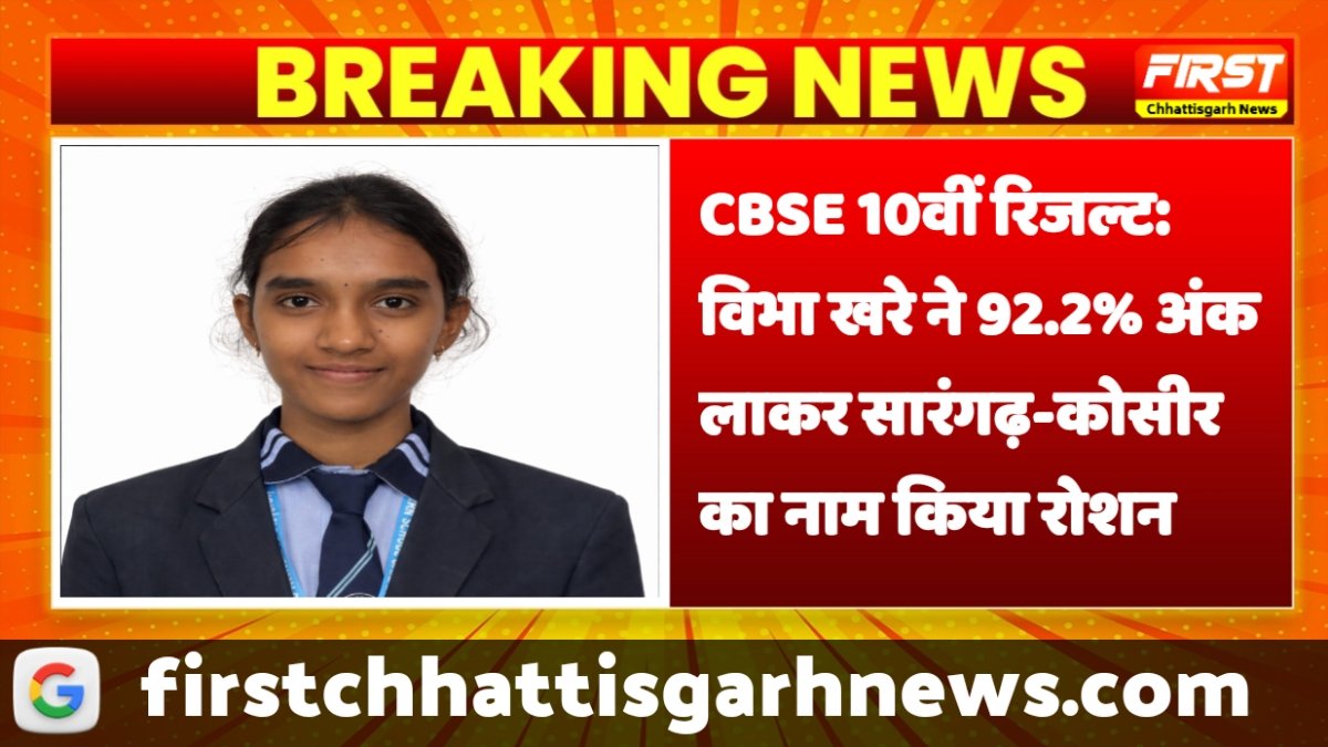 CBSE 10वीं रिजल्ट: विभा खरे ने 92.2% अंक लाकर सारंगढ़-कोसीर का नाम किया रोशन