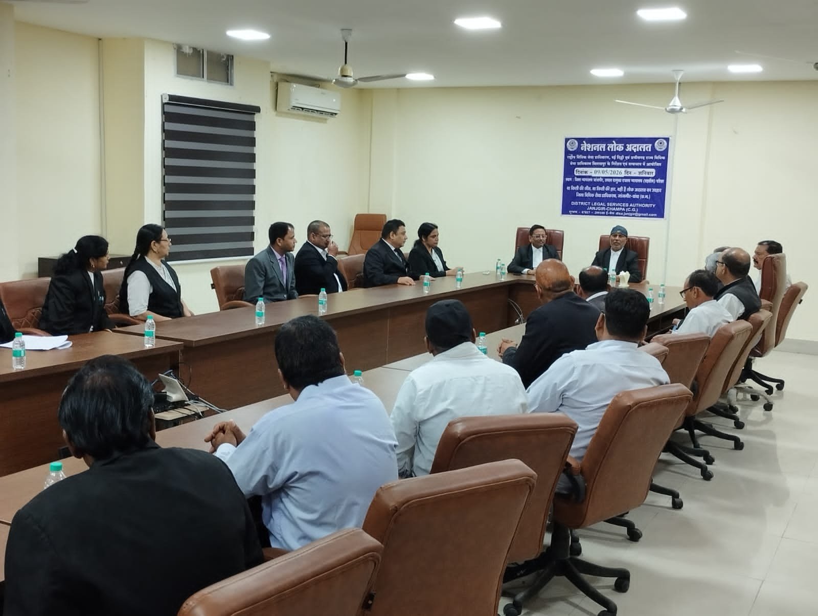 आगामी नेशनल लोक अदालत दिनांक 09 मई 2026 को सफल बनाने के उद्देश्य से जिला एवं सत्र न्यायालय जांजगीर में अधिवक्ताओं के साथ समीक्षा बैठक आयोजित की गई। बैठक में न्यायिक अधिकारियों ने अधिवक्ताओं की भूमिका को अत्यंत महत्वपूर्ण बताते हुए अधिक से अधिक प्रकरणों के निराकरण हेतु सक्रिय सहयोग का आह्वान किया।