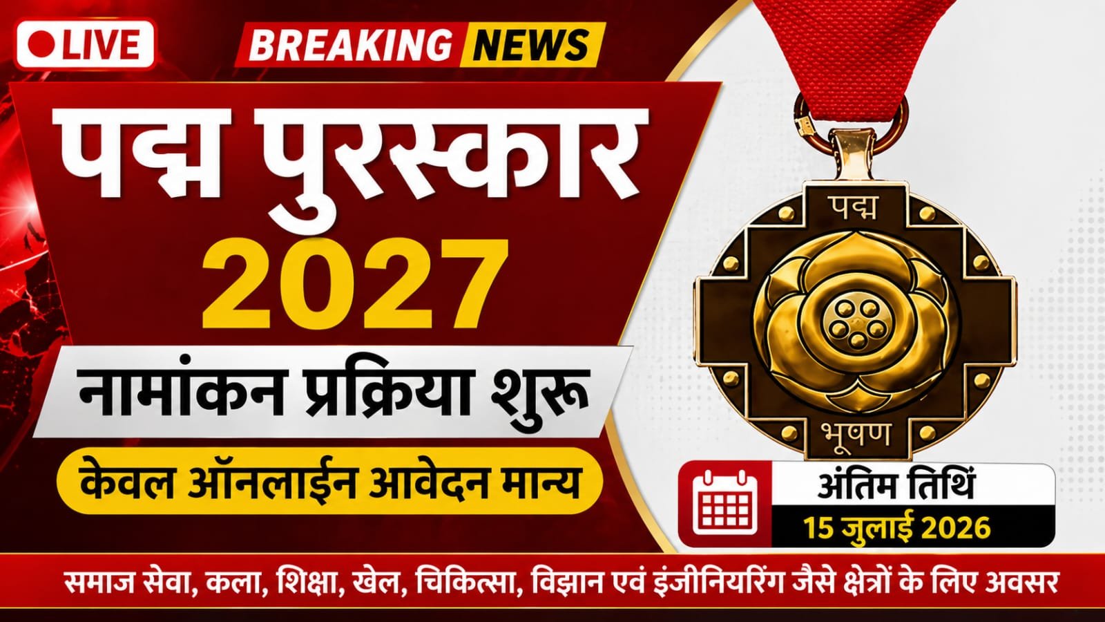 CG NEWS: पद्म पुरस्कारों के लिये नामांकन क़ी प्रक्रिया शुरू,व्यक्तिगत रूप से नामांकन केवल ऑनलाइन