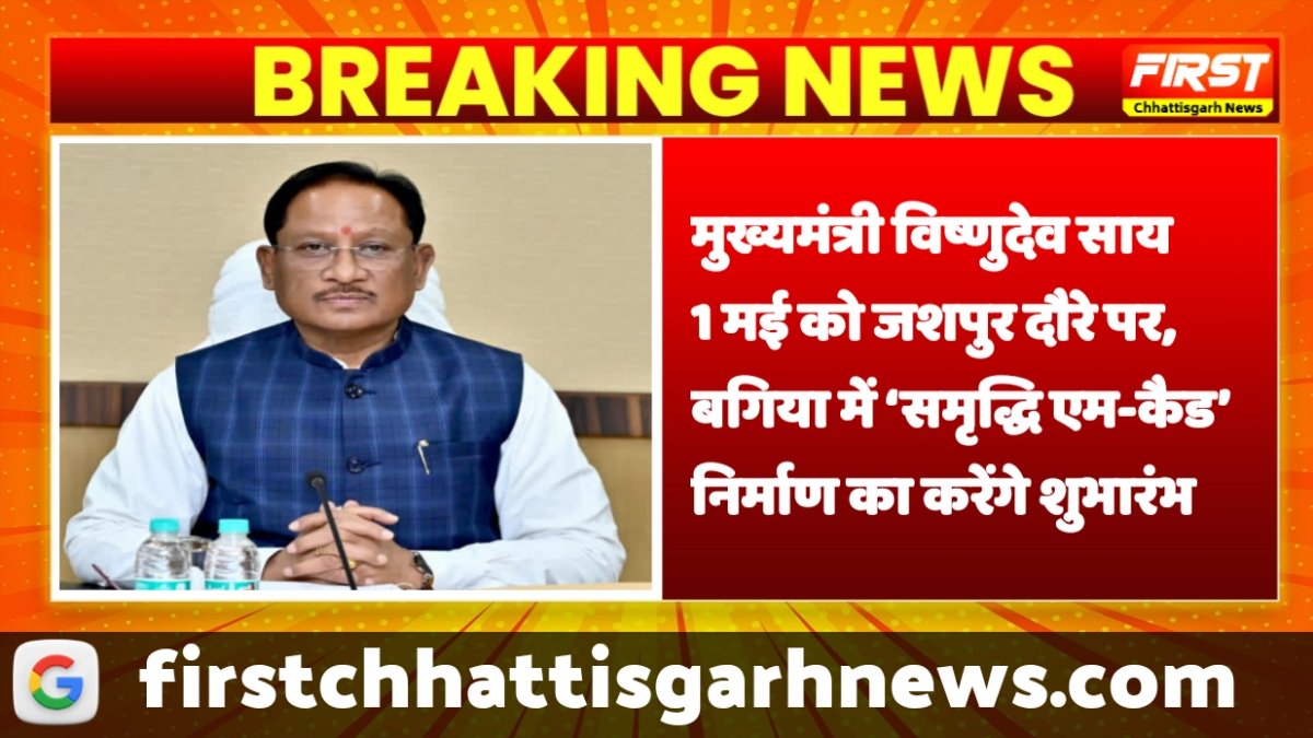 मुख्यमंत्री विष्णुदेव साय 1 मई को जशपुर दौरे पर, बगिया में ‘समृद्धि एम-कैड’ निर्माण का करेंगे शुभारंभ
