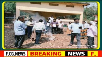 कुनकुरी ब्लॉक सचिव संघ तुगलकी फरमान के विरोध में आदेश की कॉपी जलाते हुए।